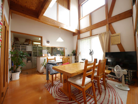 この住まいは、光と風を感じられる吹き抜けリビングが特徴。窓から差し込むやさしい陽射しが、お子様の笑顔やご家族の団らんをより豊かに彩ります。キッチンからはリビング・和室まで見渡せる間取りで、家事をしながらでもご家族の様子を感じられ安心。